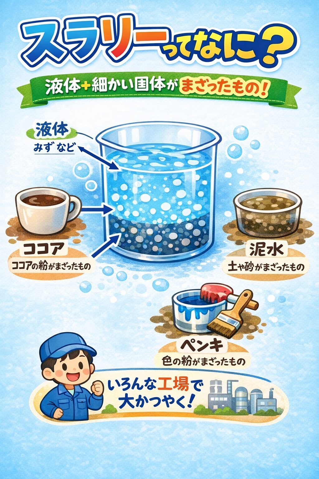 Slurry refers to a state in which fine solid particles are mixed into a liquid and remain flowable.