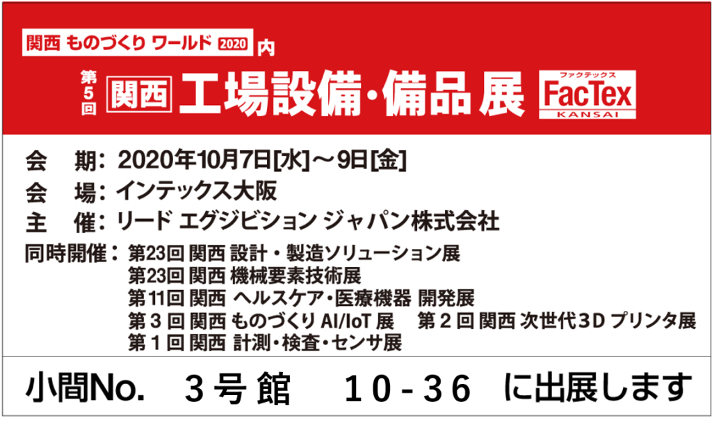 インテックス大阪にて10月7日~9日に開催される「工場設備・備品展2020」へ出展します。