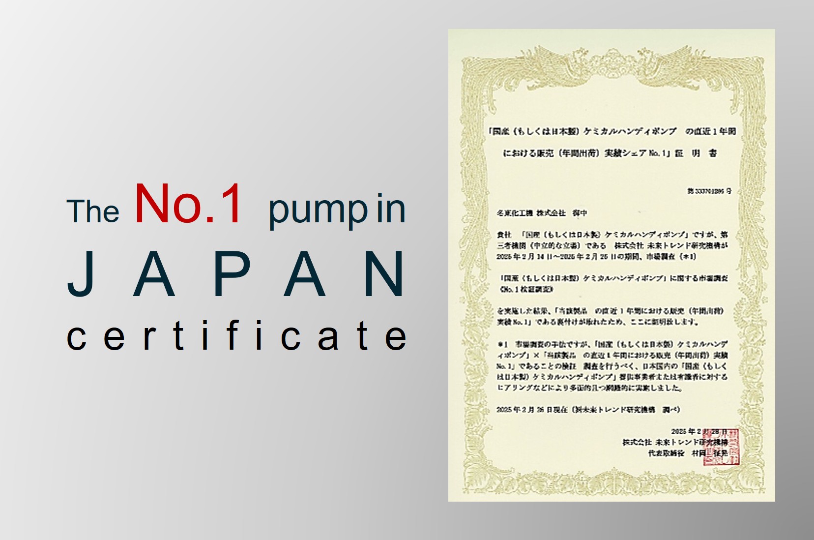 *Regarding “Chemical Handy Pump”, a third-party organization (neutral position) Future Trend Research Institute Co., Ltd. conducted market research from February 14, 2025 to February 26, 2025.