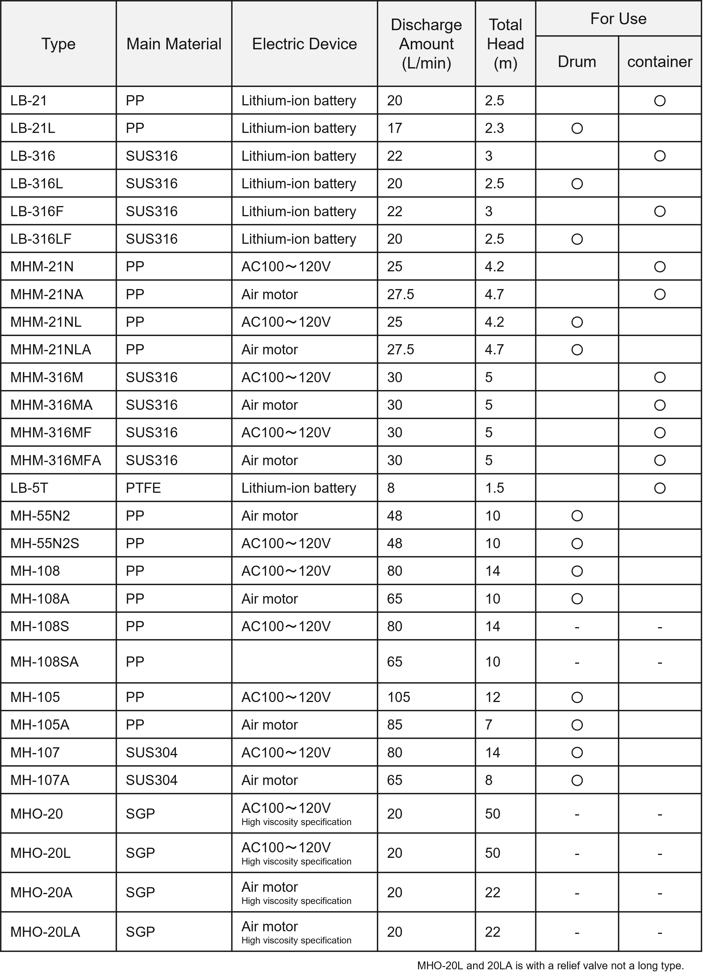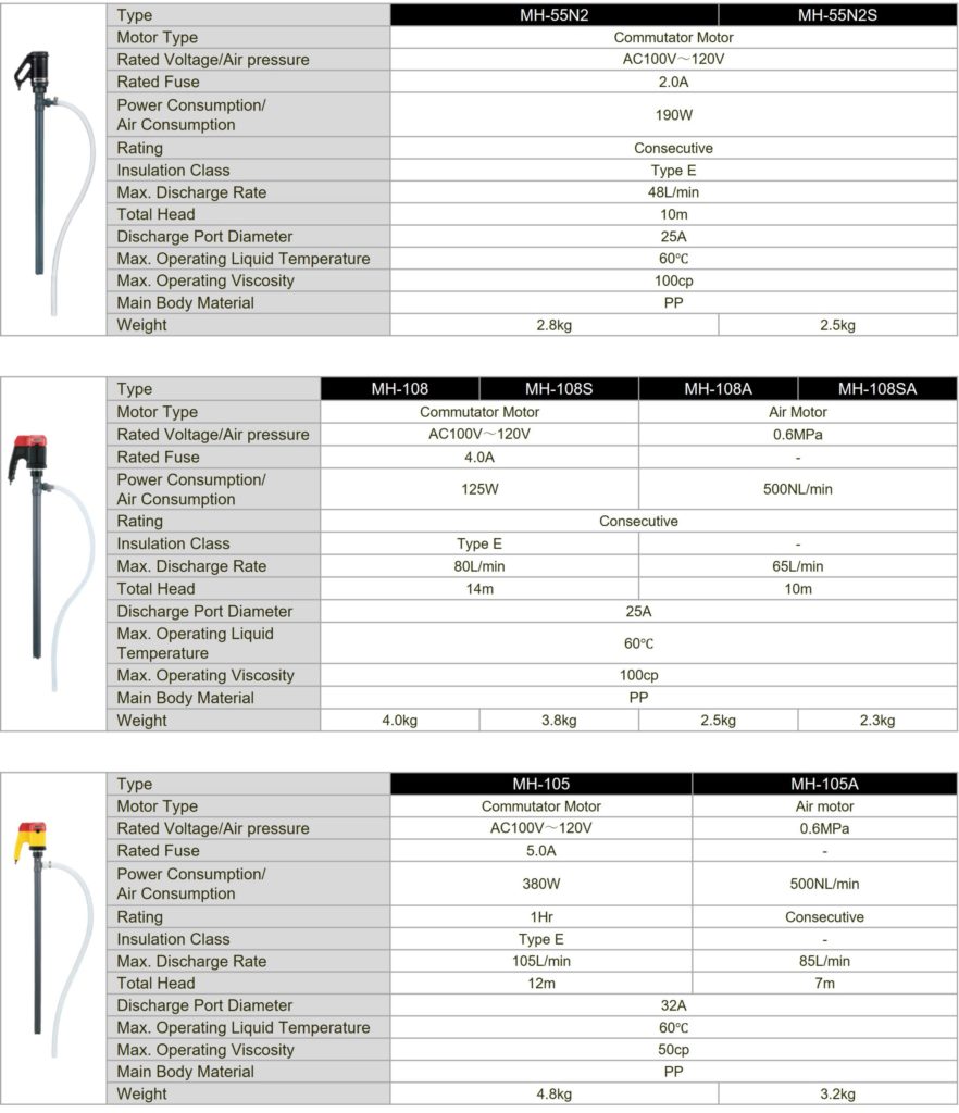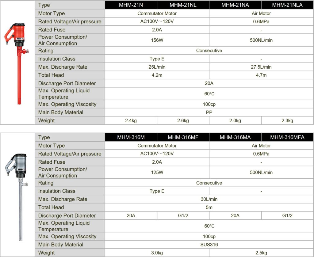 Drum and Container Pumps ー Specifications & Lineup
