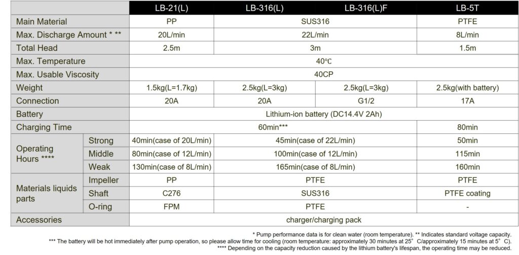 Designed to transport every type of liquid chemical. Selected material such as P.P., PTFE & stainless steel creates excellent chemical resistance irrespective of volume and viscosity of liquid.